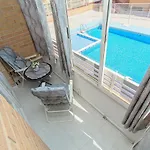 Denna lägenhet har utsikt över poolen och erbjuder ett kök med kylskåp, brödrost och ugn.